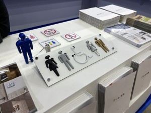 今回のブースでは、規格品をベースにした別注仕様のサインを多く展示いたしました。
