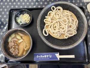 お昼には地元の方でにぎわっていた食堂でつけ汁うどんを食べました。